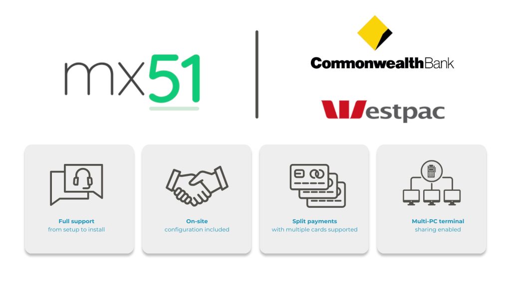Now compatible with MX-51 EFTPOS terminals via Commonwealth Bank and Westpac.
